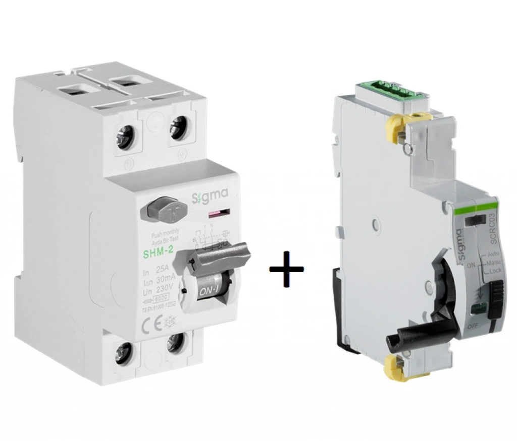 Kaçak Akım Koruma Şalteri Otomatik Yeniden Kapama Ünitesi Sigma SCRC03 Kaçak akım koruma şalteri otomatik yeniden kapama aksesuarı, Sigma kaçak akım koruma şalterinin bağlı bulunduğu sistemde oluşan herhangi bir kaçak akım nedeni ile devre dışı kalması durumunda kaçak akım koruma şalterini tekrar otomatik devreye alan bir aksesuardır.