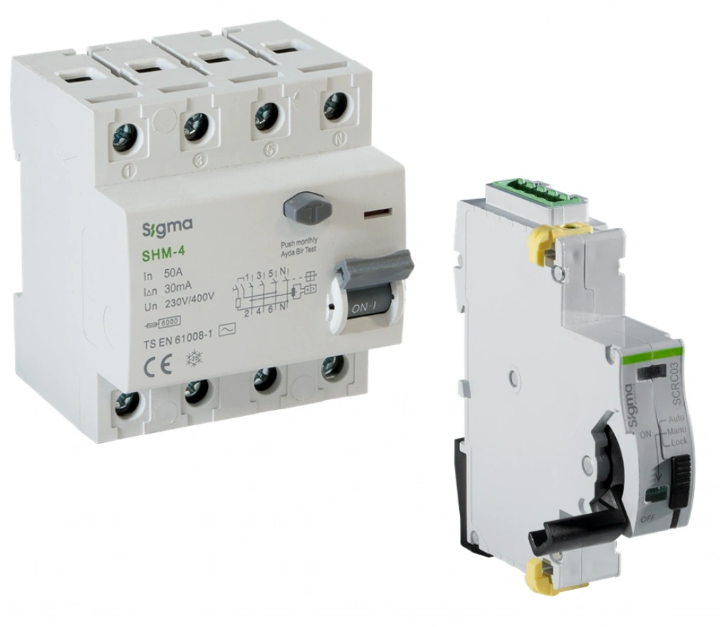 Kaçak Akım Koruma Şalteri Otomatik Yeniden Kapama Ünitesi Sigma SCRC03 + TRİFAZE SHM4050030 4P*50 30mA 6kAKaçak Akım Rölesi